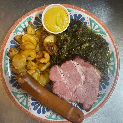 Grünkohl mit Kasseler, Kohlwurst und Bratkartoffeln